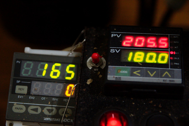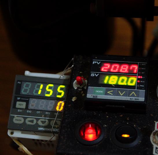 利用風門與火力的控制,從1爆開始,原有的測溫點可以溫升10度,讓(同時)新的測溫點只升1度,時間可以長達3分鐘,