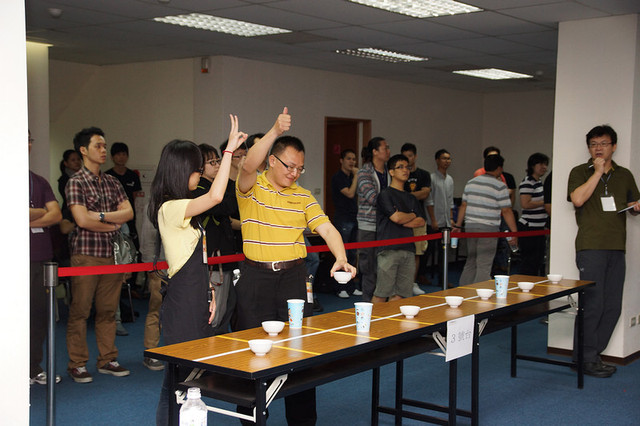 採用三角杯測,一共八組,由每一組選出不同的飲品。