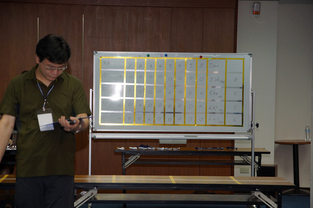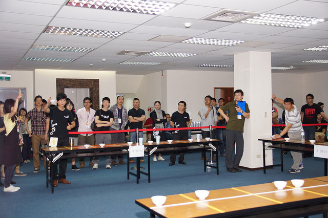 一次同時有四位參賽者,每一桌還有一位紀錄員,